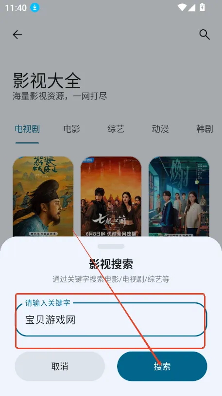 或者点击搜索框,输入关键词,精准检索喜欢的影音
