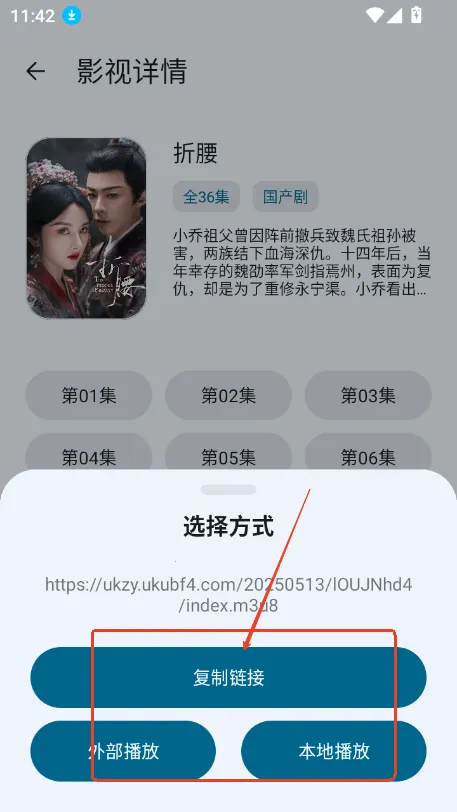 支持本地播放,或者复制链接到第三方平台进行播放,或者外地播放三种播放方式
