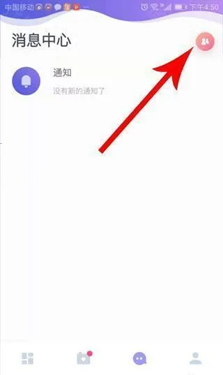 4、打开uki消息中心后,点击右上角的“双人”图标。