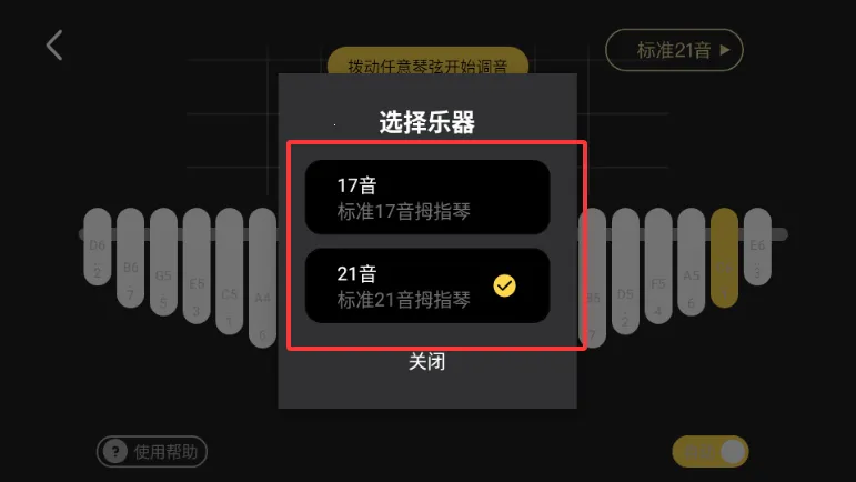 2、支持17键与21键琴型切换,适配多种主流拇指琴型号,满足不同调音需求。