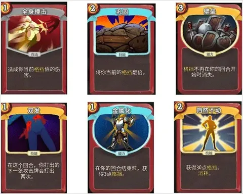 2、防战:通过叠甲防御并反击。全身冲击(0费高伤)是核心输出卡。巩固(护甲翻倍)必拿。壁垒(保留护甲)是核心卡,缺它强度大减。双引擎配合全身冲击提升伤害。金属化(每回合+3甲)效果一般。岿然不动(单卡最高护甲)强力防御。