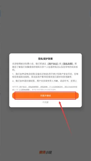 1、打开进入秘读小说,点击同意协议就能够进入软件