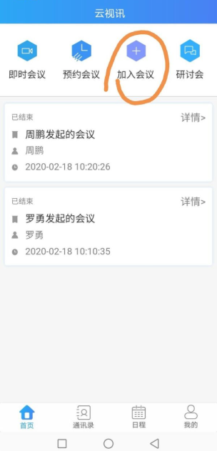 3、在首页,用户可以点击加入会议选项