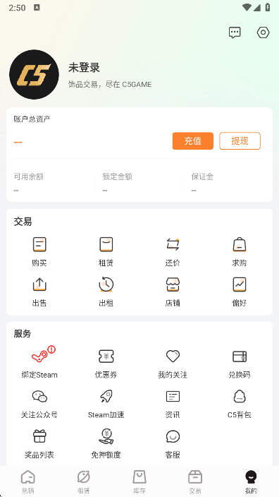 c5game交易平台app是一款专业的游戏饰品交易平台,在这个平台也是带来了全面的饰品交易服务,用户可以随时了解到相关的饰品内容的,能够为大家带来便捷的饰品交易体验,在这里也是可以轻松满足您的需求体验,有需要的朋友现在就来下载使用吧!