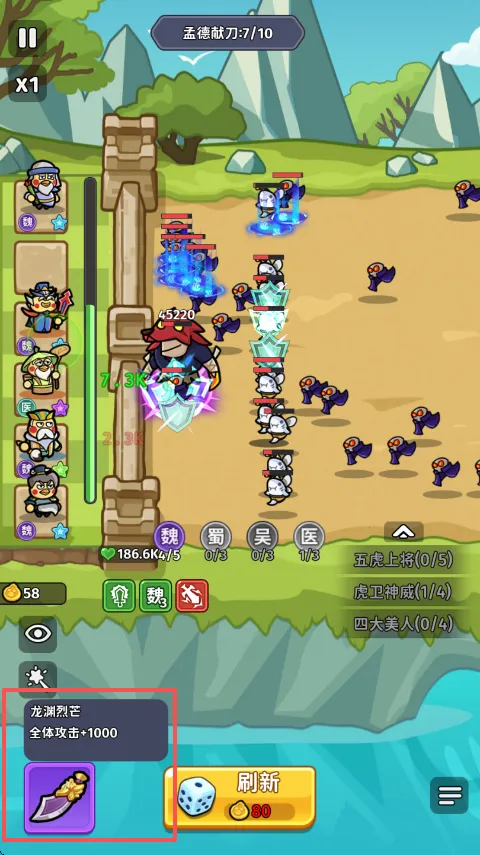 3、在战斗中,比如刷新的武将没有曹操,那就优先曹魏武将,哪怕核心武将孙权的属性更好。