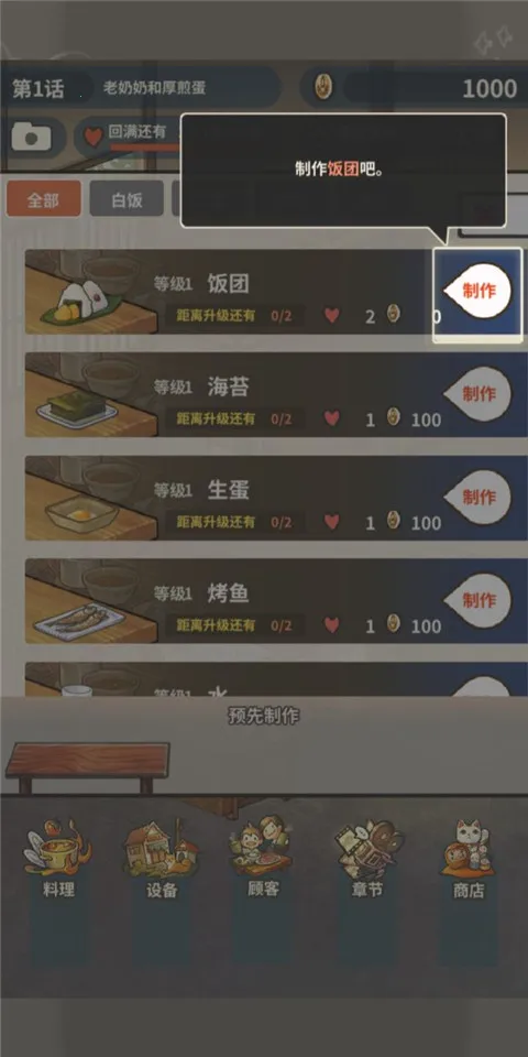 4、如下图示:有客人光顾,接待并点击“制作”料理吧