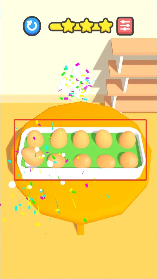 2、鸡蛋放指定区域,观察移动轨迹和落点,抓住最佳时机松手,确保精准落入目标框内。