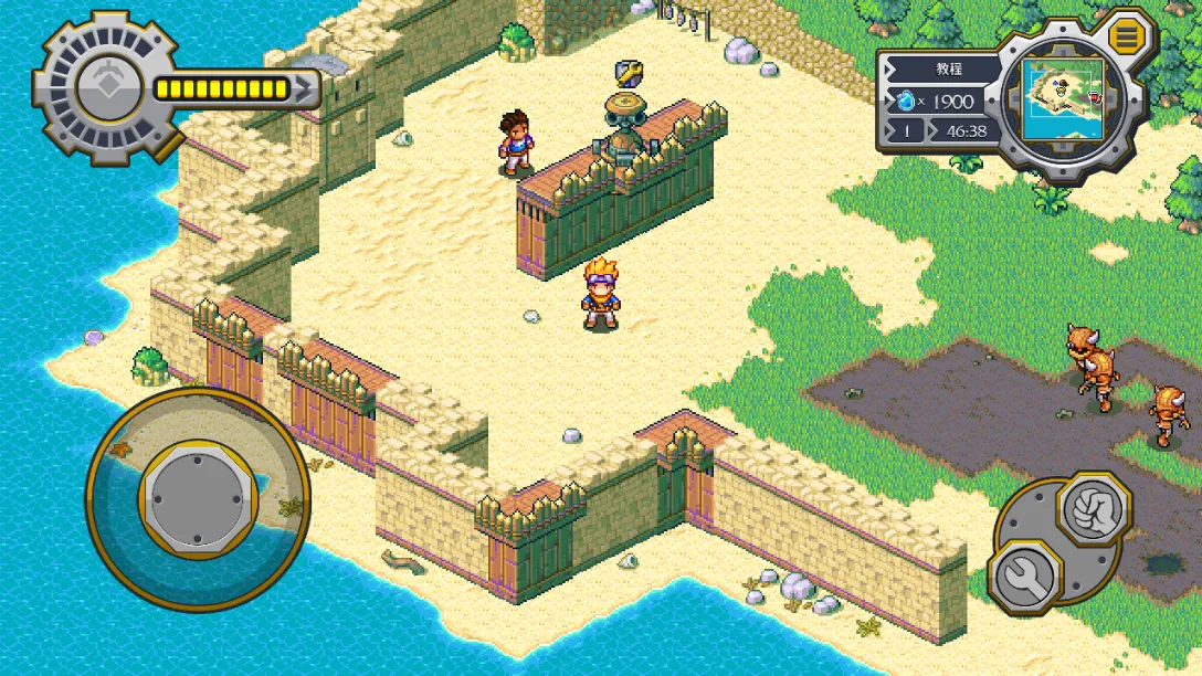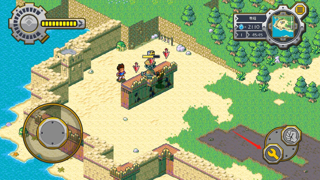 进入游戏后,爷爷会给任务,比如去海边修筑围墙。玩家拖动下方围墙放置指定地点,放错能售卖。发条人进攻时,建造炮台抵御,击败敌人可搜刮源能用于建造或修理构筑物。玩法简单易懂,主界面点击新游戏,按提示操作就行。左边摇杆控制角色移动,右边按钮和NPC互动。战斗时切换放置建筑,点击对应建筑再点绿色对勾放置。每个建筑消耗点数,击败敌人回收资源增加点数。放好建筑点击左上角红色按钮开始战斗,可操控角色或看炮塔消灭敌人。还有全新无尽模式,能让你尽情享受塔防乐趣,揭开王国秘密。